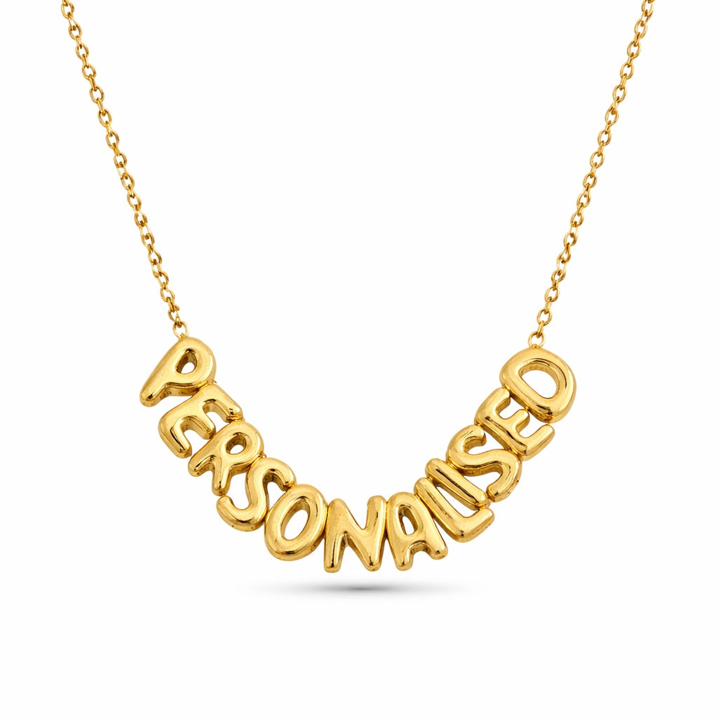 Plain Gold Personalised Bubble Necklace - Maximum 13 letters